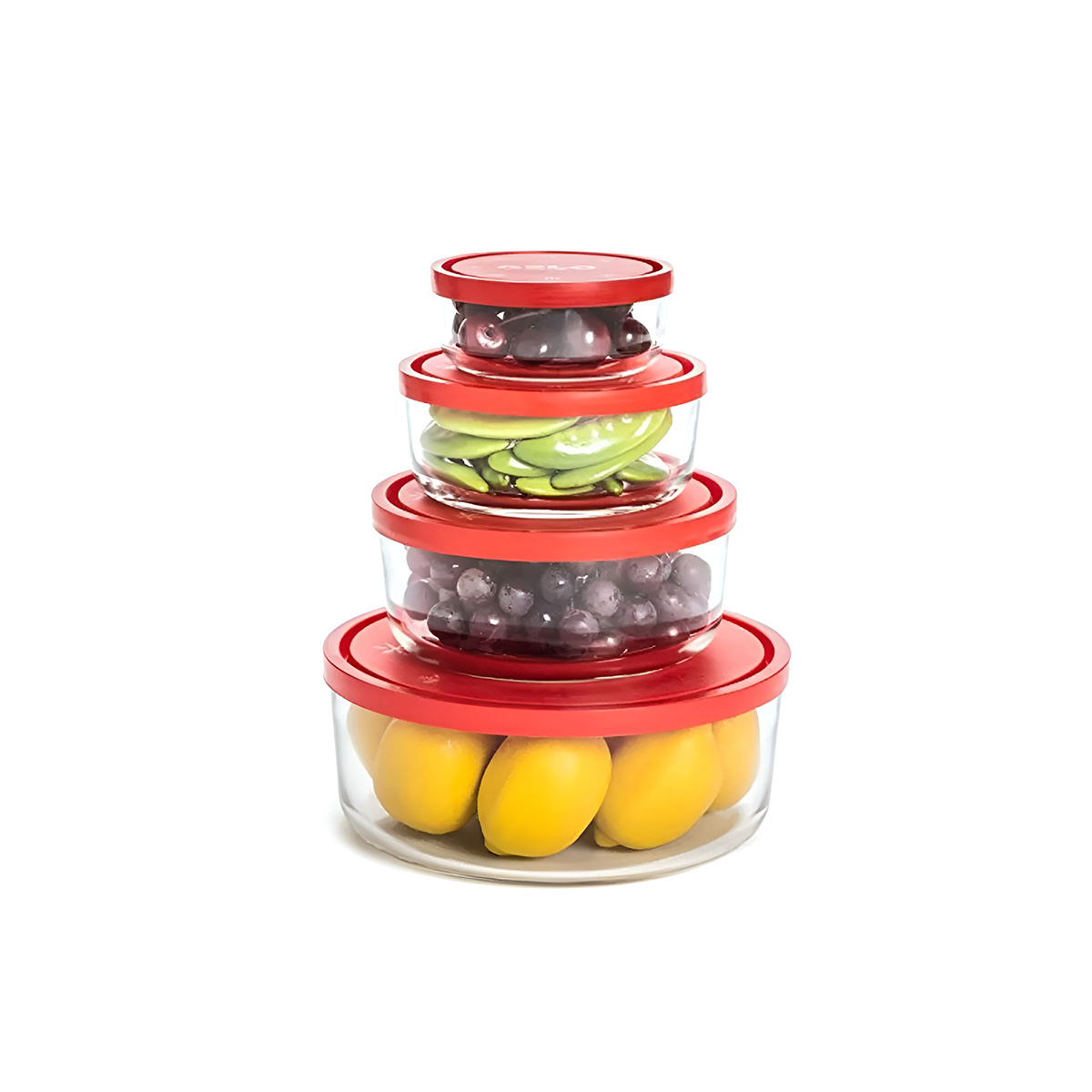 - The set includes 4 round containers that fit together and take up little space