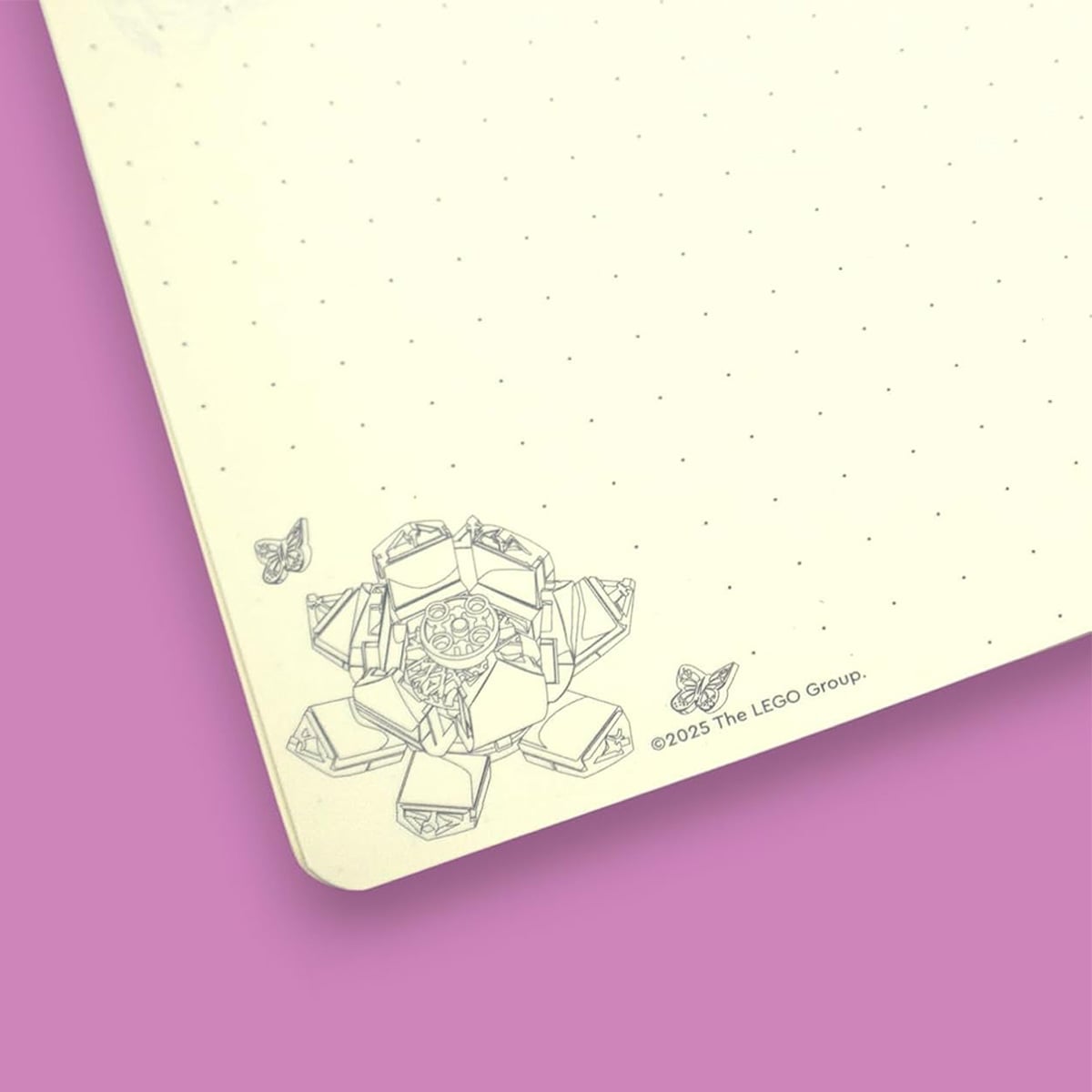 The notebook consists of 192 dot-patterned sheets. It comes with Lego flower-patterned tabs, which you can use to mark the desired pages. The sheets are presented on plastic rings.