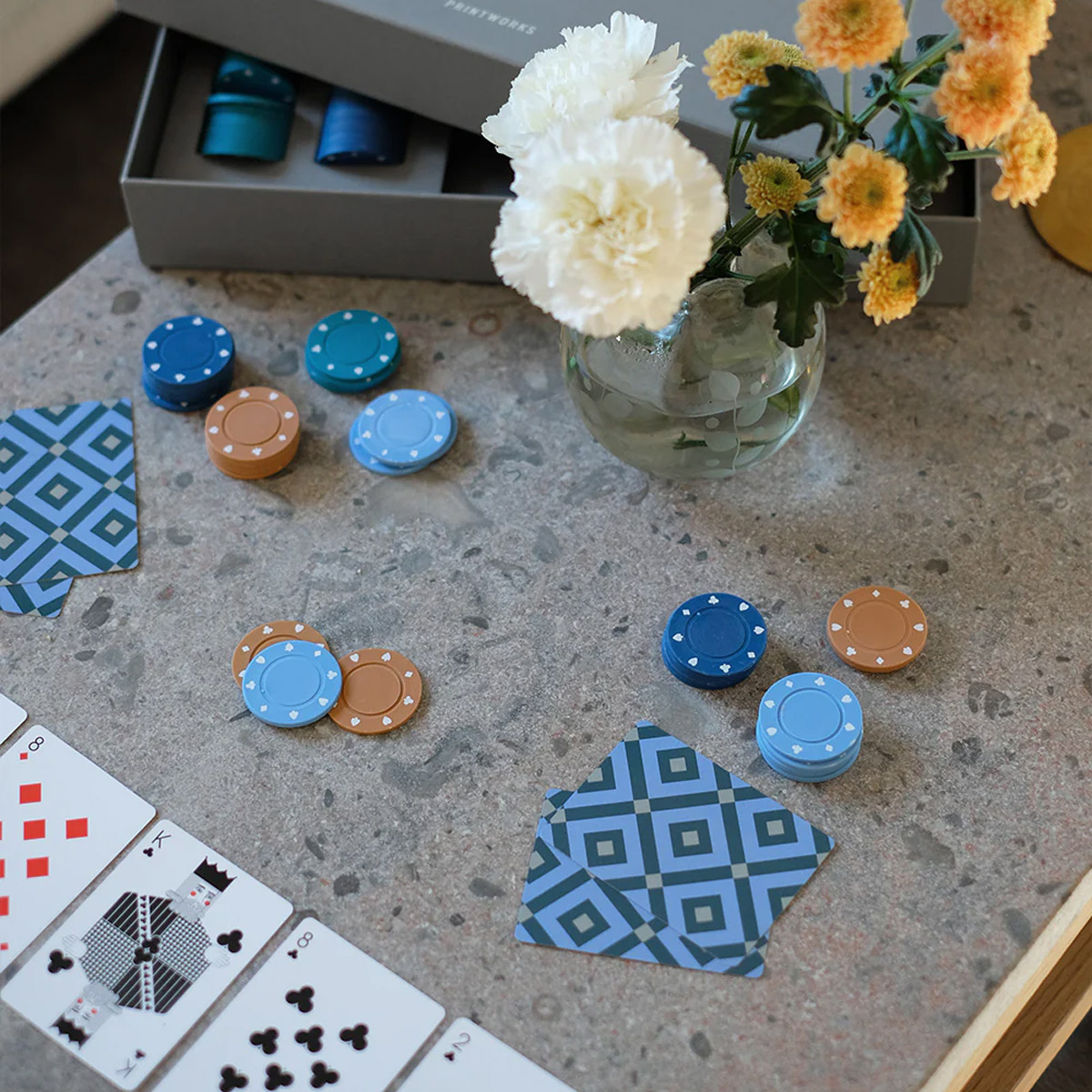 Printworks-ის დახვეწილი პოკერის სათამაშო ნაკრები იდეალურად აერთიანებს აზარტს და მაღალი ხარისხის დიზაინს. Printworks-ის ექსკლუზიური Classic Game სერიის ეს მოდელი გამოირჩევა სუფთა, მინიმალისტური ესთეტიკით და ელეგანტური ორნამენტებით.