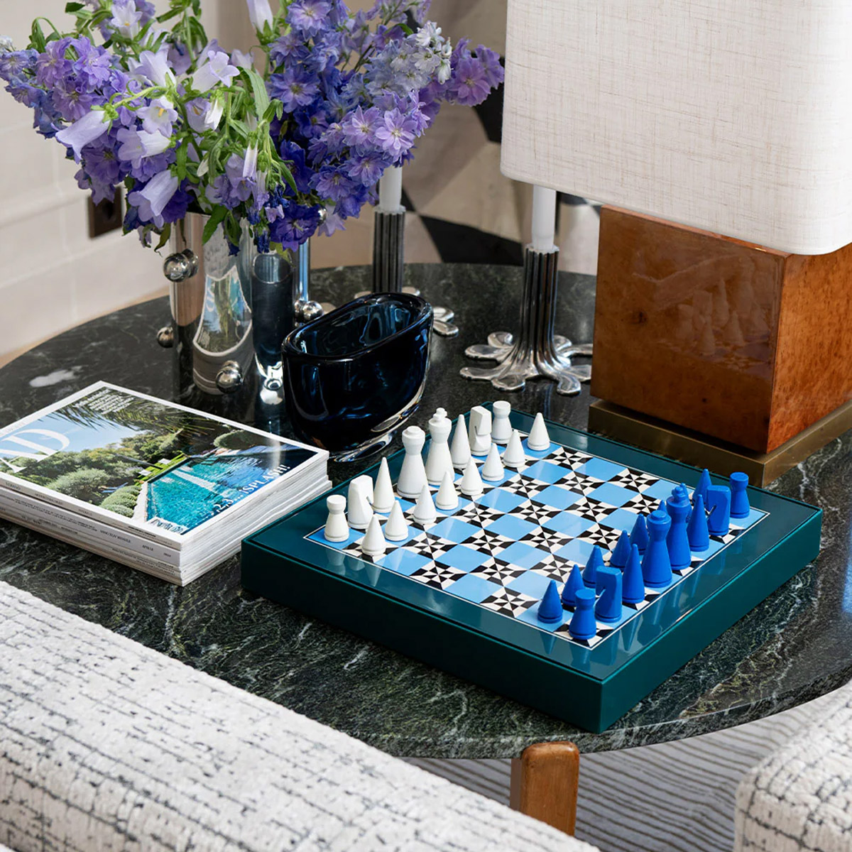 Athena-ს ლაქირებული ჭადრაკის ნაკრები კლასიკური სტრატეგიული თამაშის და თანამედროვე ხელოვნების განსაცვიფრებელი სინთეზია. გამოირჩევა პრიალა ზედაპირით და მკვეთრი პრინტით, რაც მას ინტერიერის დახვეწილ დეკორაციად აქცევს. შთაგონებულია ზღვის ბერძნული ღმერთის – პოსეიდონის სახელით, რაც ტრადიციული ჭადრაკის თამაშს სრულიად ახალი, თამამი და თანამედროვე ესთეტიკით წარმოგვიდგენს.