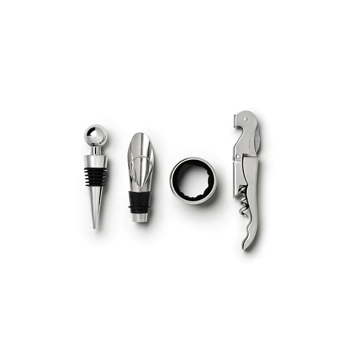 აქსესუარების ერგონომიული დიზაინი უზრუნველყოფს მაქსიმალურ კონტროლს და მინიმუმამდე დაჰყავს ისეთი რისკები, როგორიცაა საცობის გატეხვა ან ღვინის დაღვრა. ინდუსტრიული სიმტკიცით გამორჩეული უჟანგავი ფოლადი მდგრადია კოროზიის მიმართ. ნაკრები უზრუნველყოფს ტექნიკურ სიზუსტეს ღვინოსთან მუშაობისას – ფოლგის მოჭრიდან – ბოთლის ჰერმეტულად დახურვამდე.