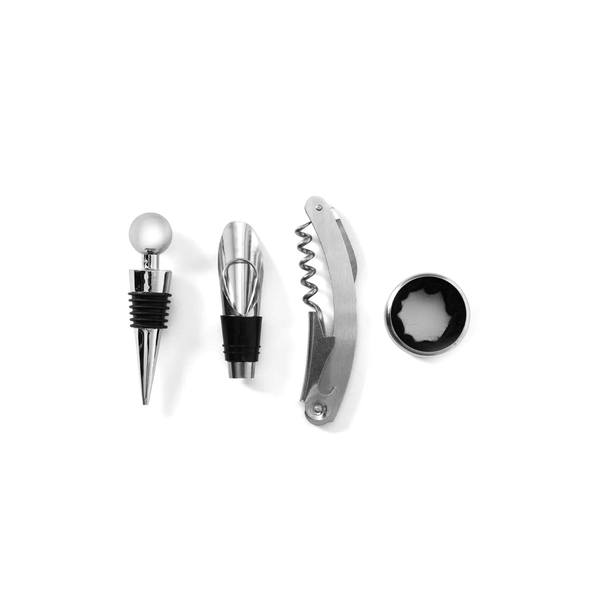 სამზადებულია მაღალი ხარისხის, კოროზიის მიმართ მდგრადი უჟანგავი ფოლადისგან. ნაკრებში შედის ღვინის ბოთლის გასახსნელი, ბოთლის საცობი, აერატორი და ბოთლის დამცავი.